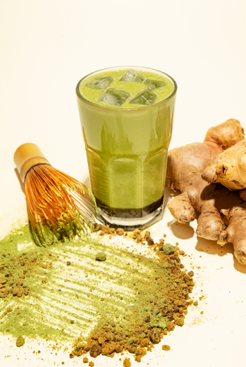 The earthy taste of Matcha tastes complete with the dark, rich and firey notes from our ginger syrup.